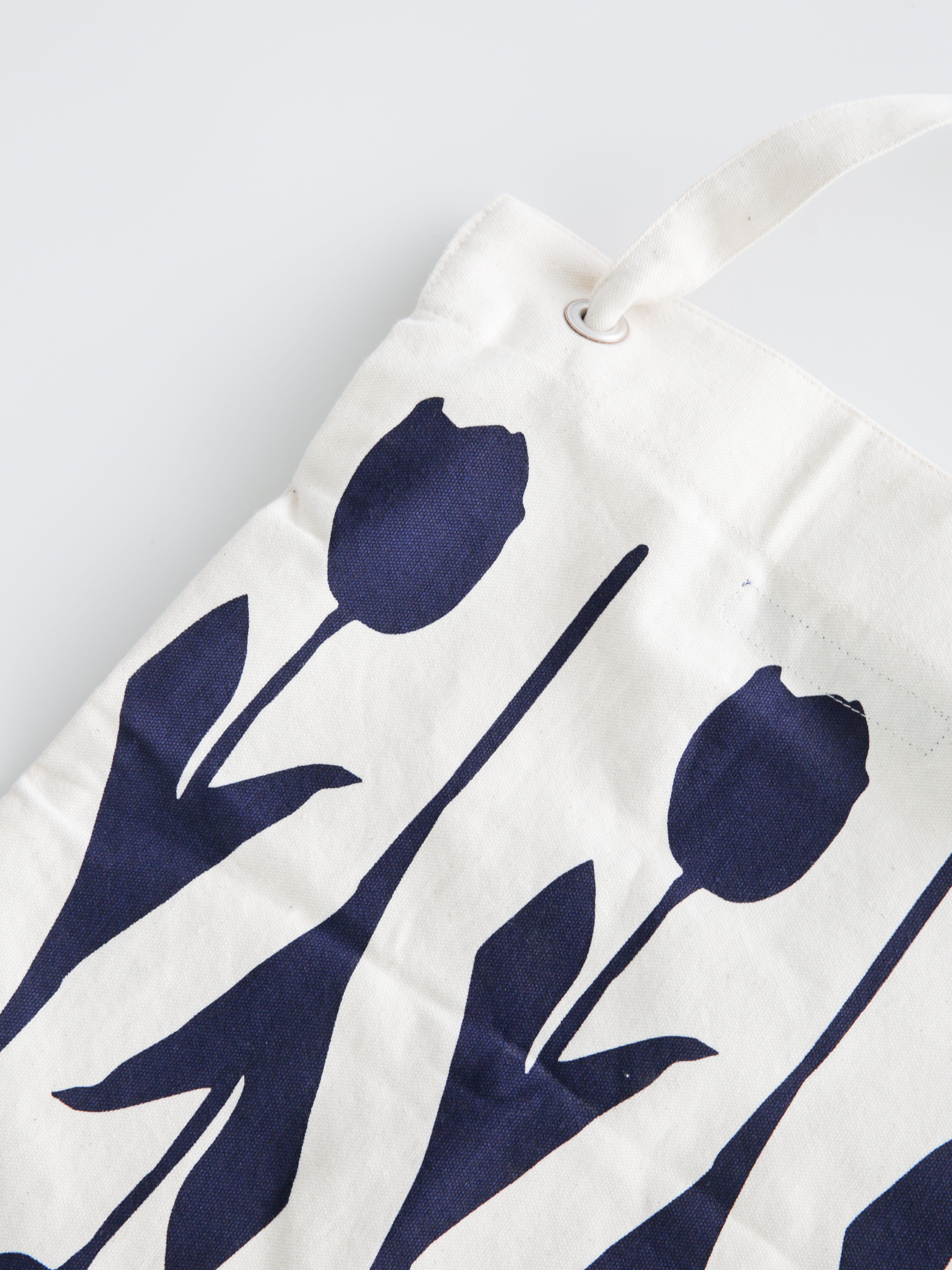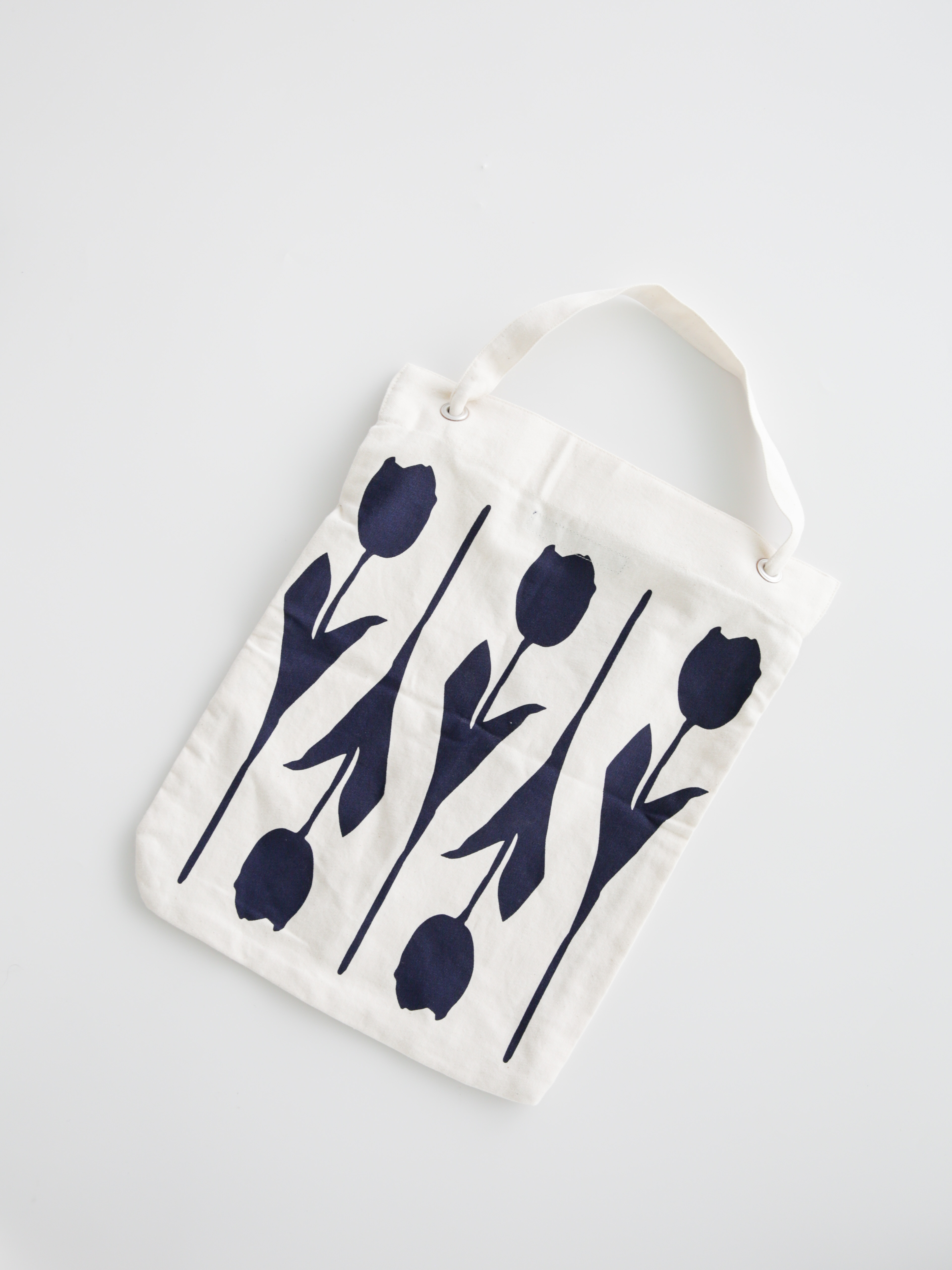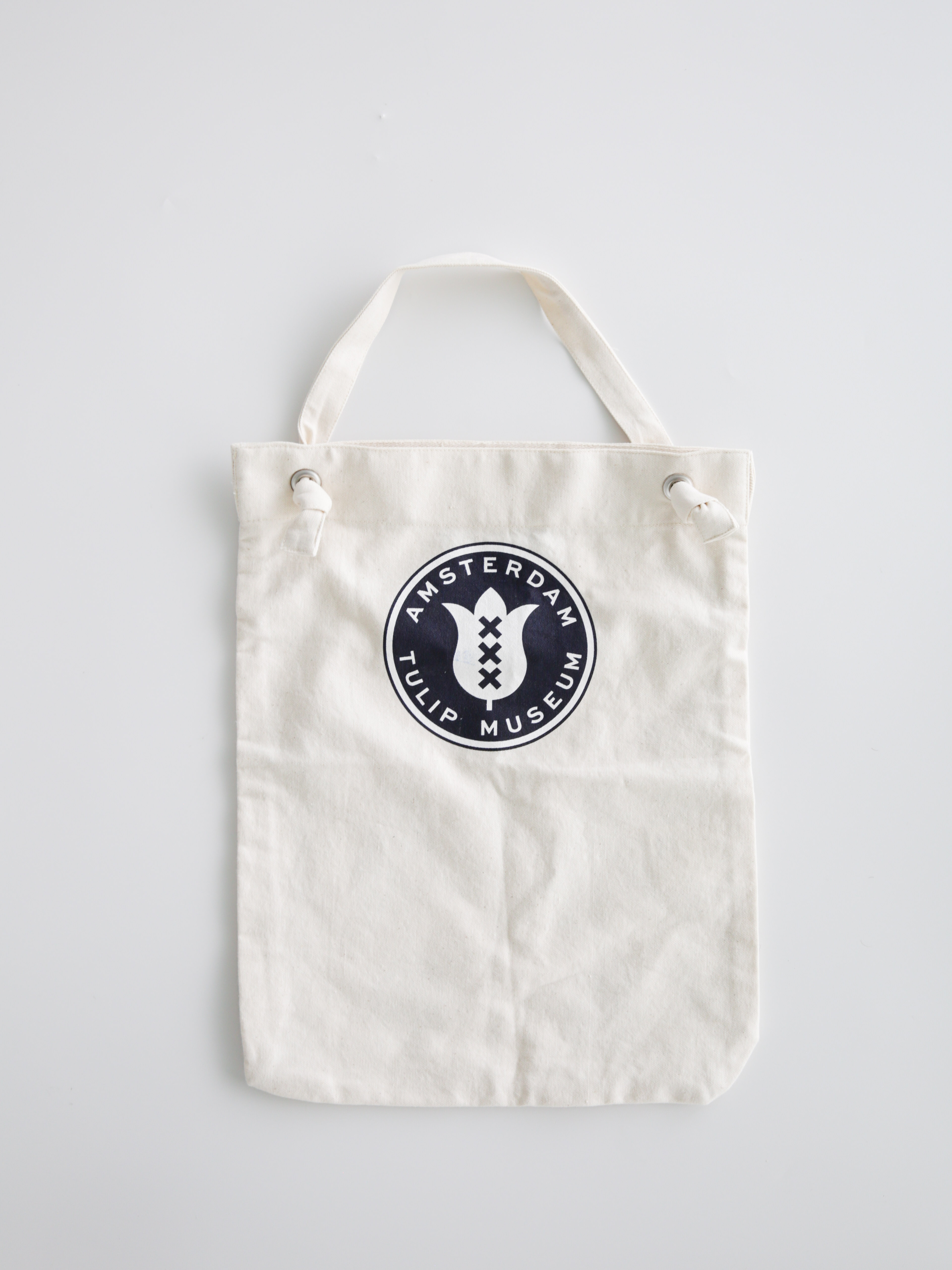 Part of the Junya Watanabe x Amsterdam Tulip Museum collaboration. Undyed cotton canvas tote in beige. With carry handle at top, logo printed in white and navy at face and graphic printed in navy at back face. Approx. 13 length x 17 height.