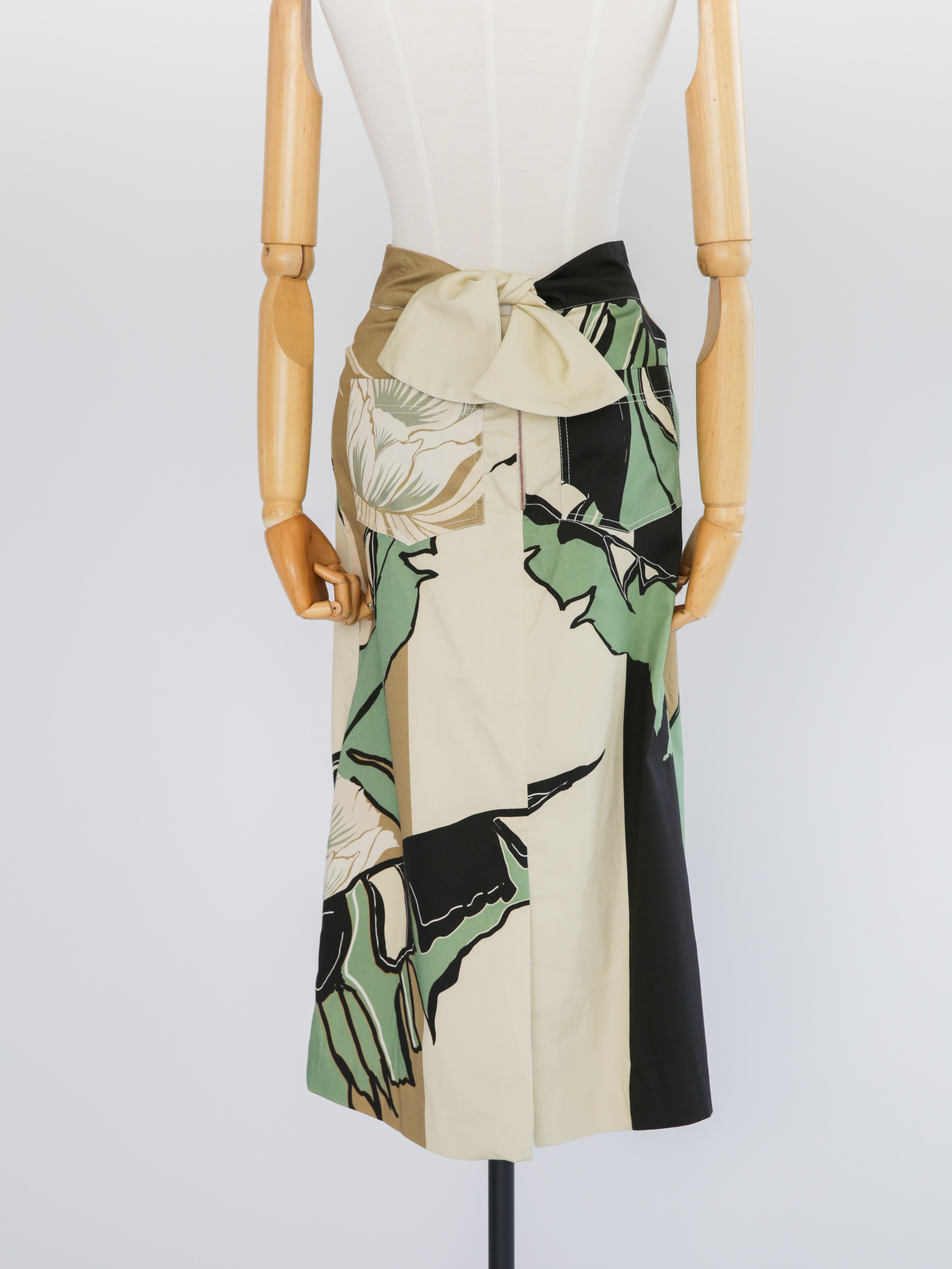Authentic Manuscript Printed Cotton-Blend Skirt