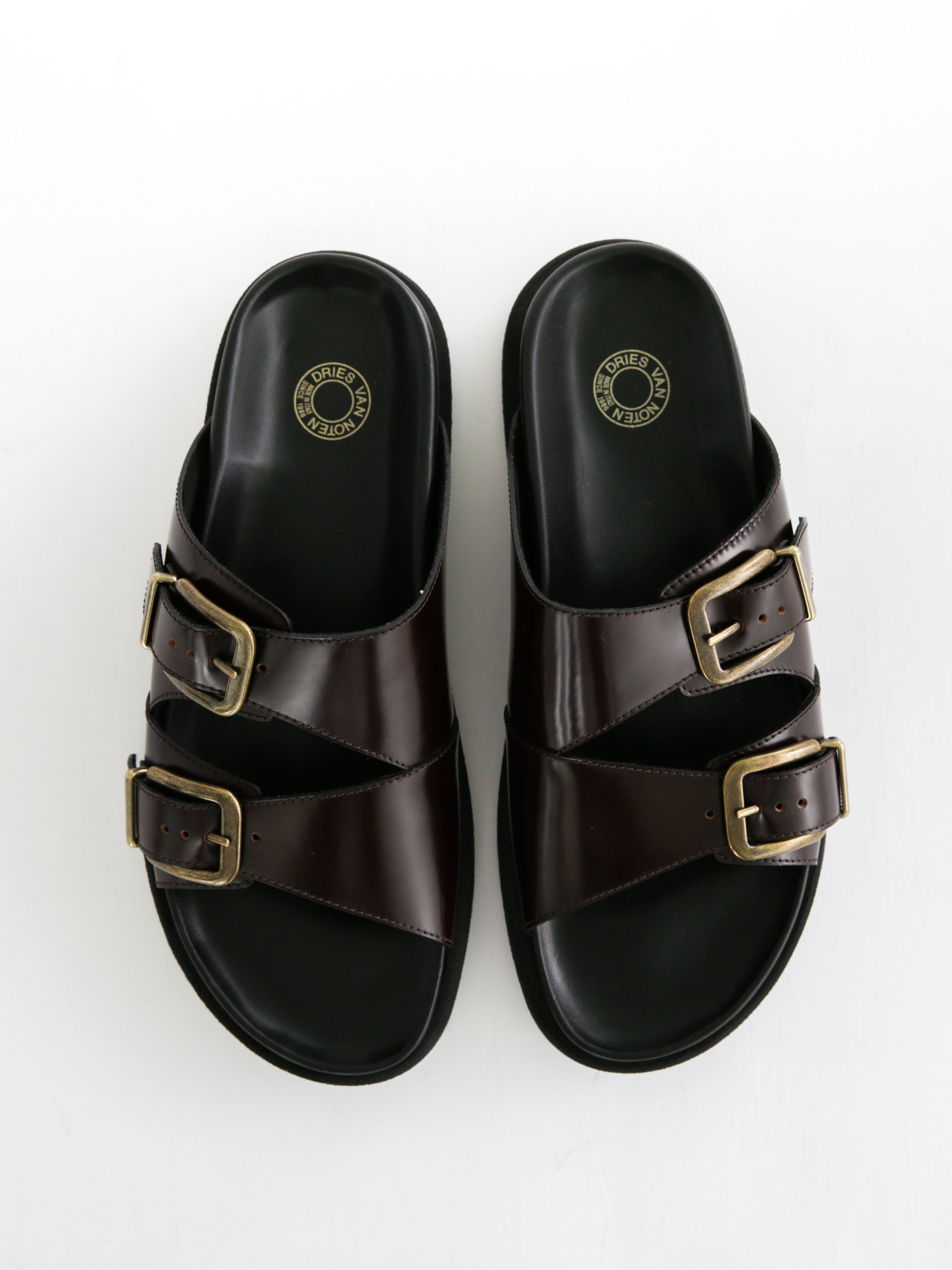 - Straps featuring adjustable pin-buckle fastening at vamp