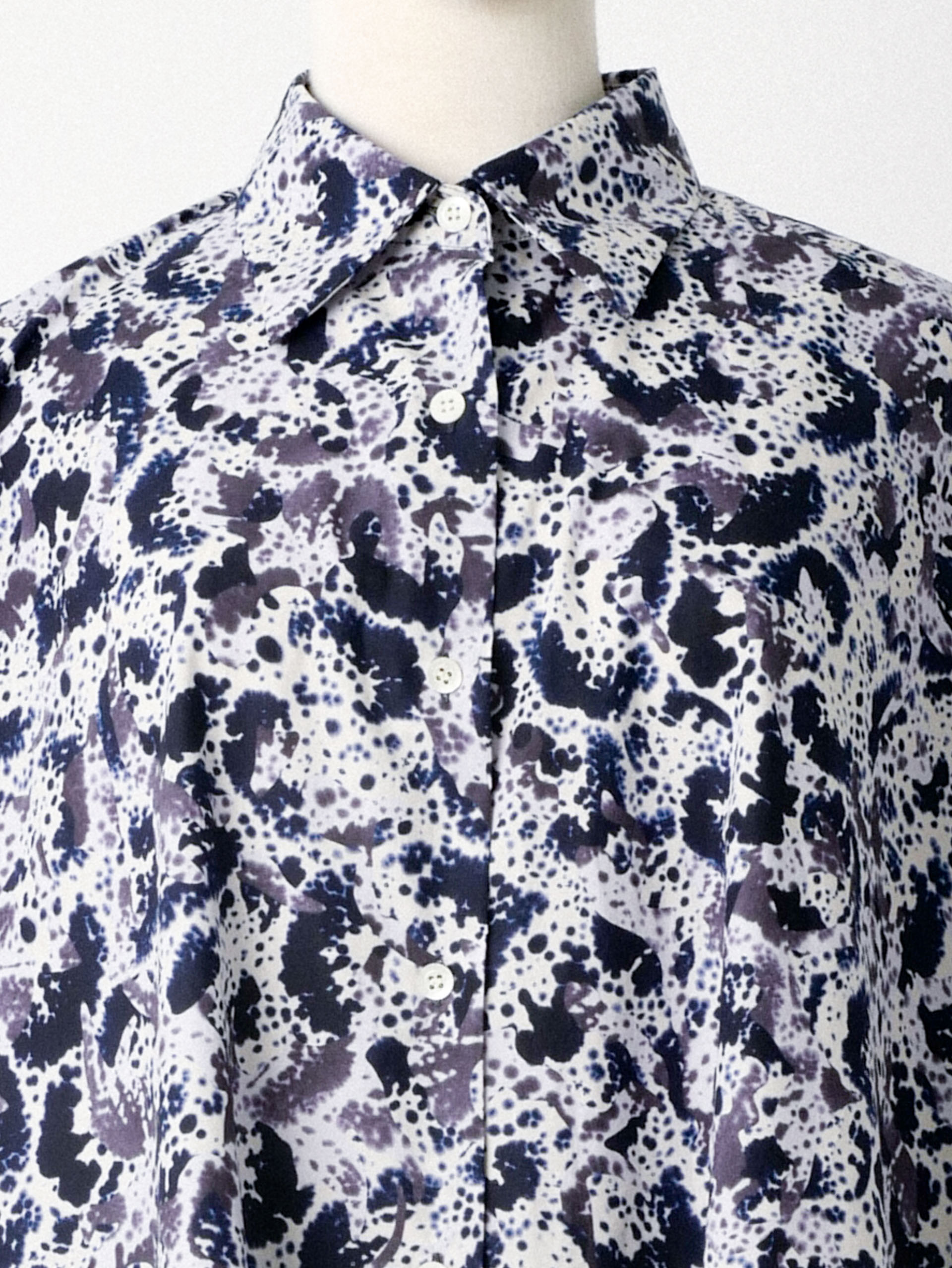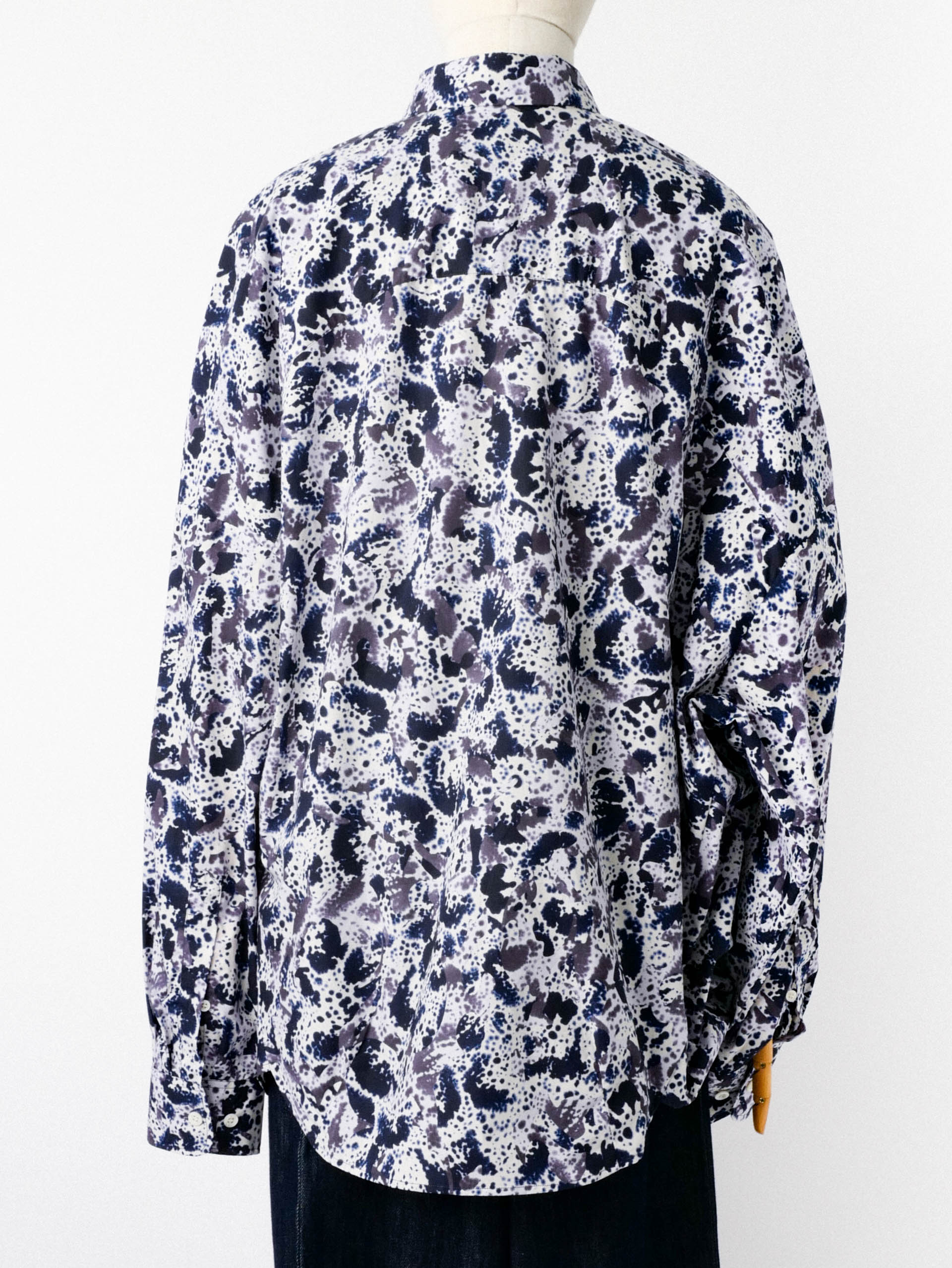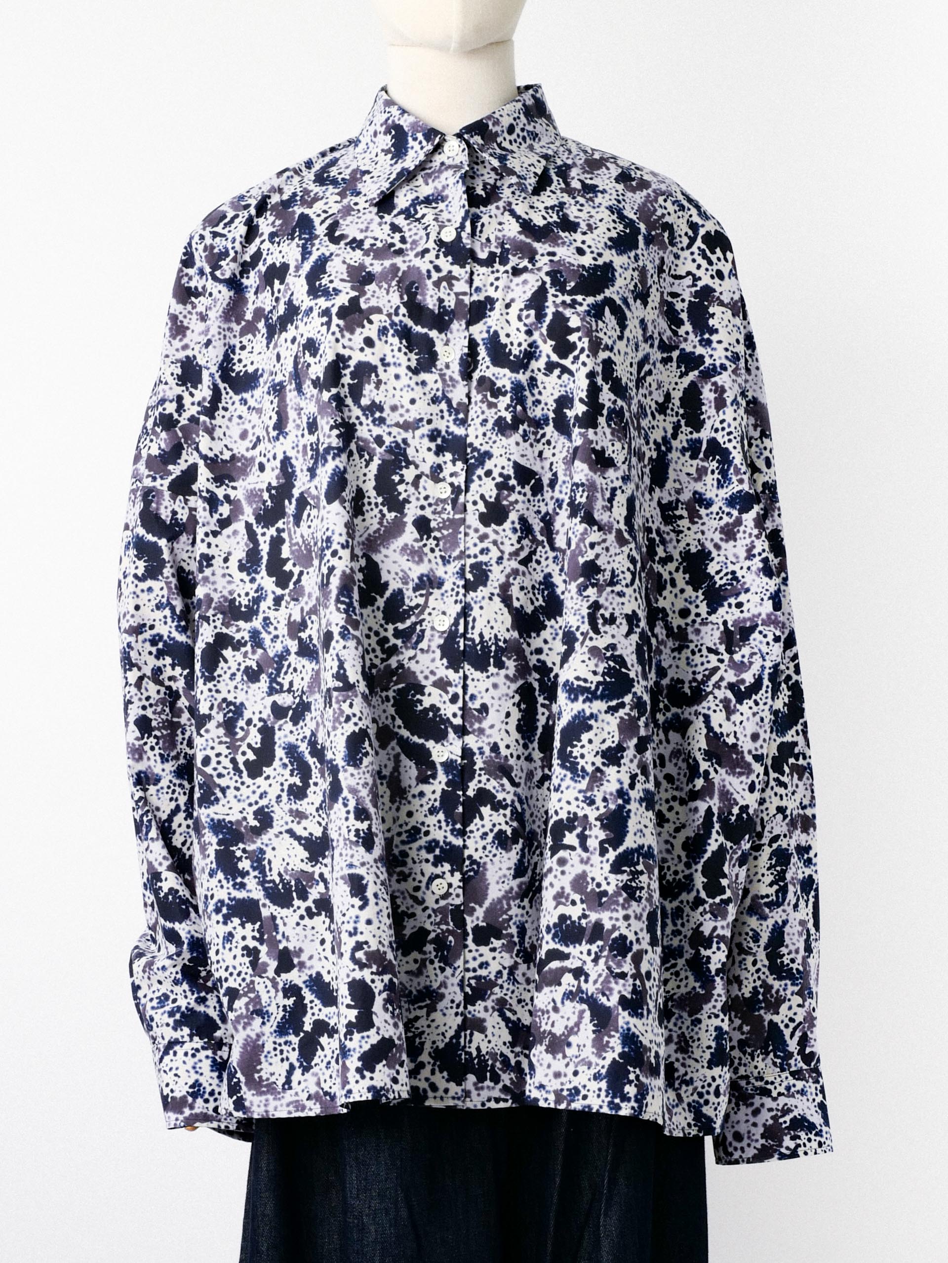 Printed cotton button-down shirt in navy from Dries Van Noten