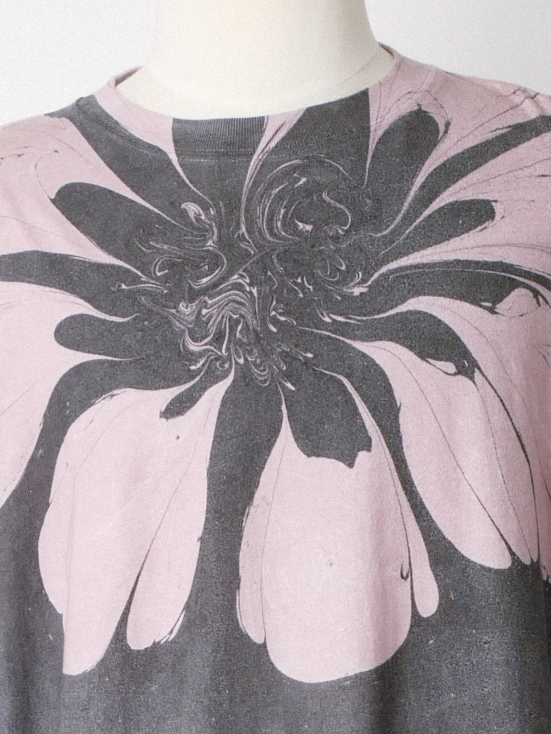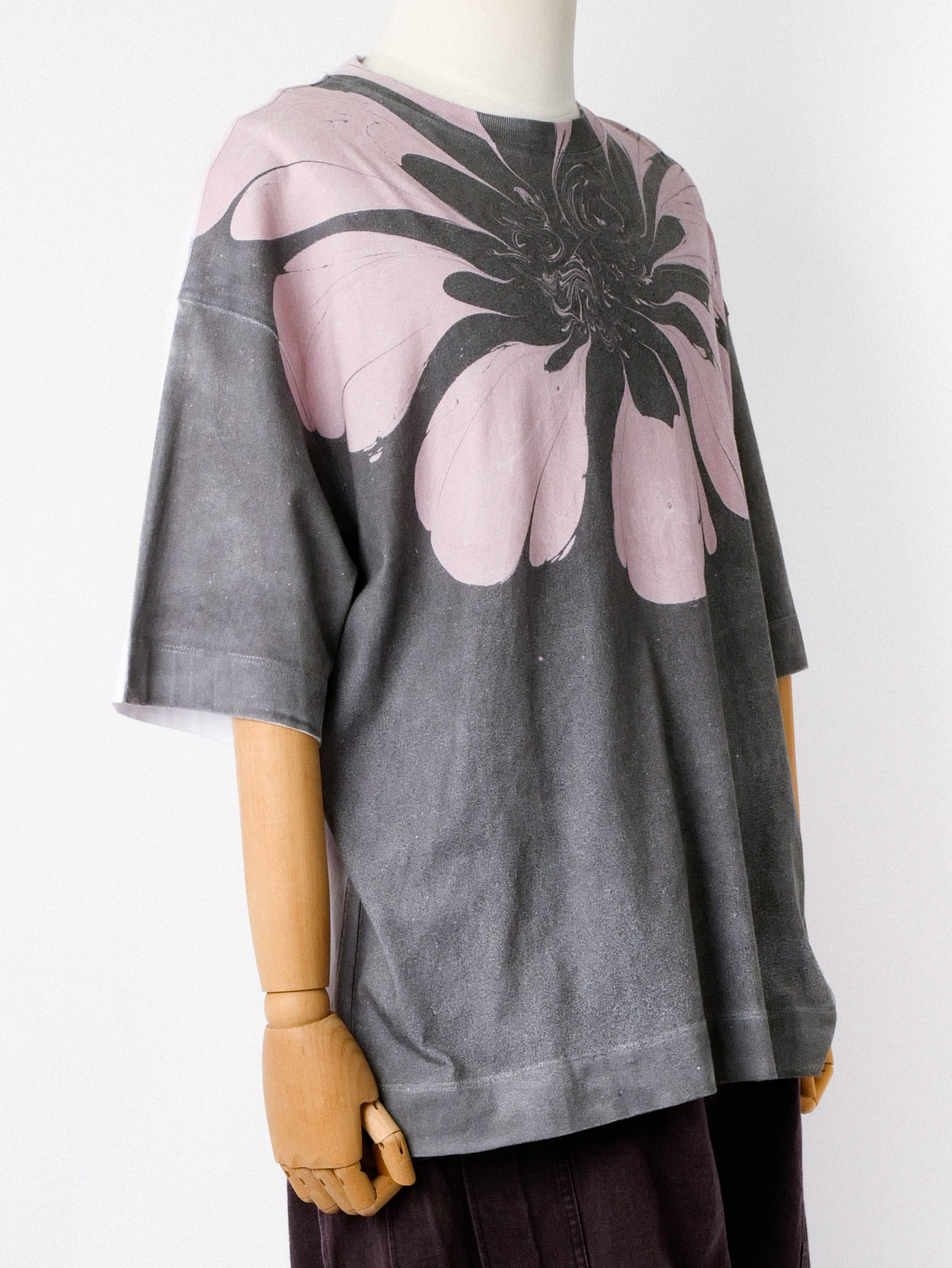 Oversized cotton jersey T-shirt in heavy cotton jersey with Placed Suminagashi Flower Print