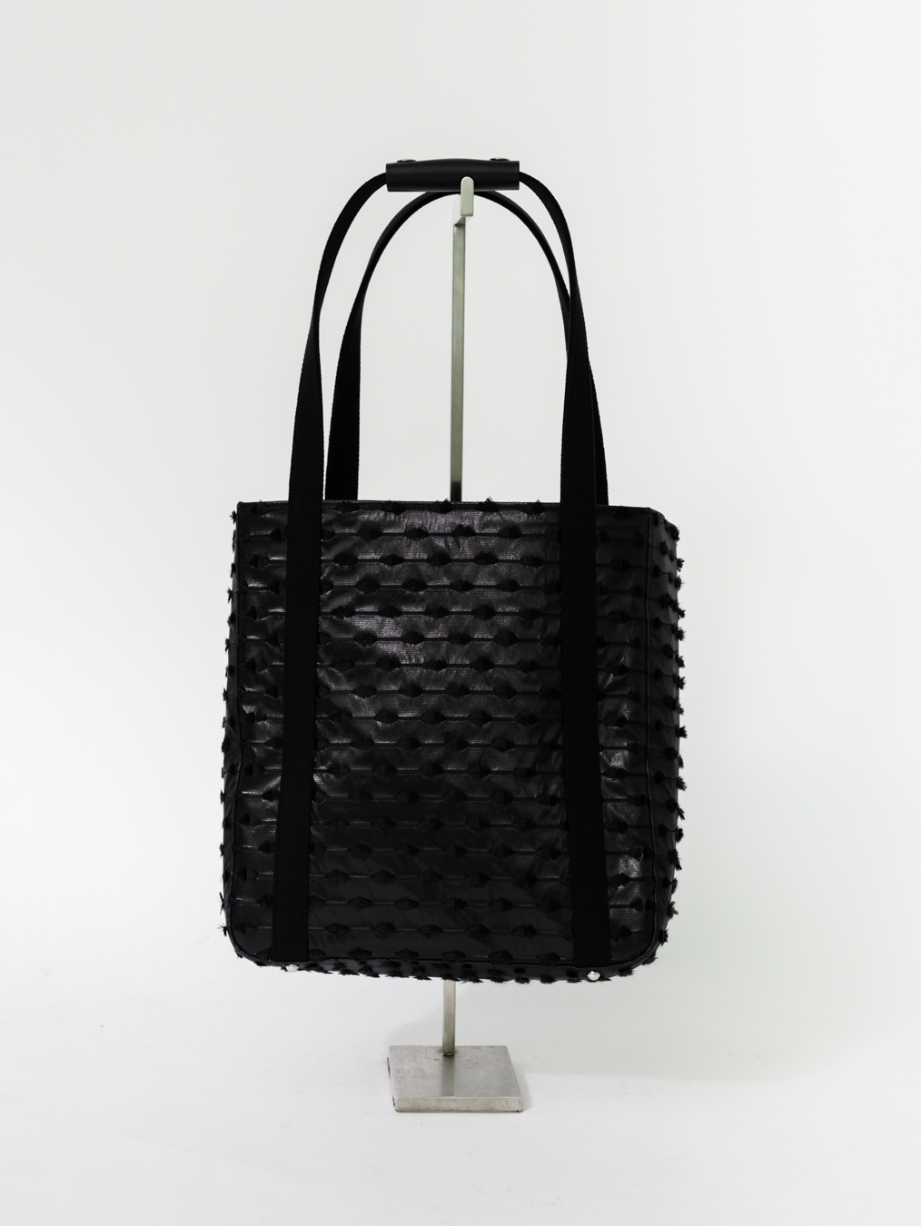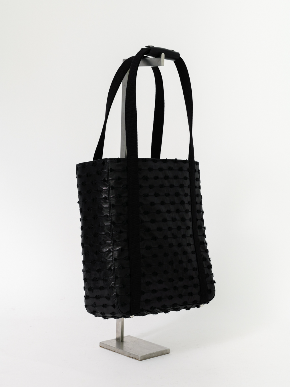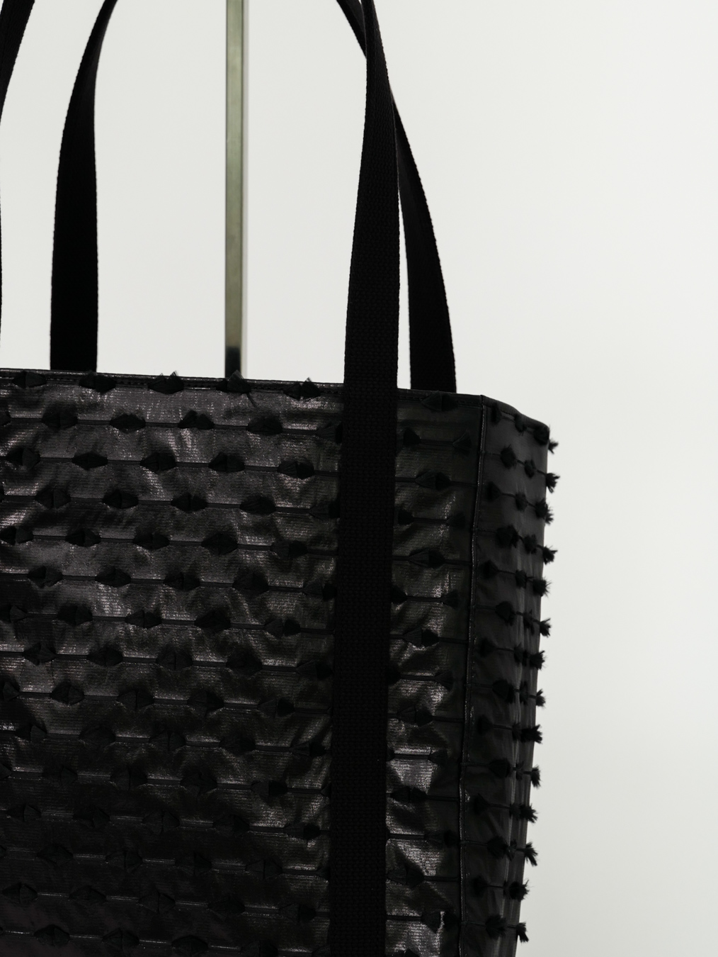 Large Frame tote bag from CECILIE BAHNSEN featuring textured finish, concealed press-stud fastening, flat top handles, open top, jet black and pure cotton.