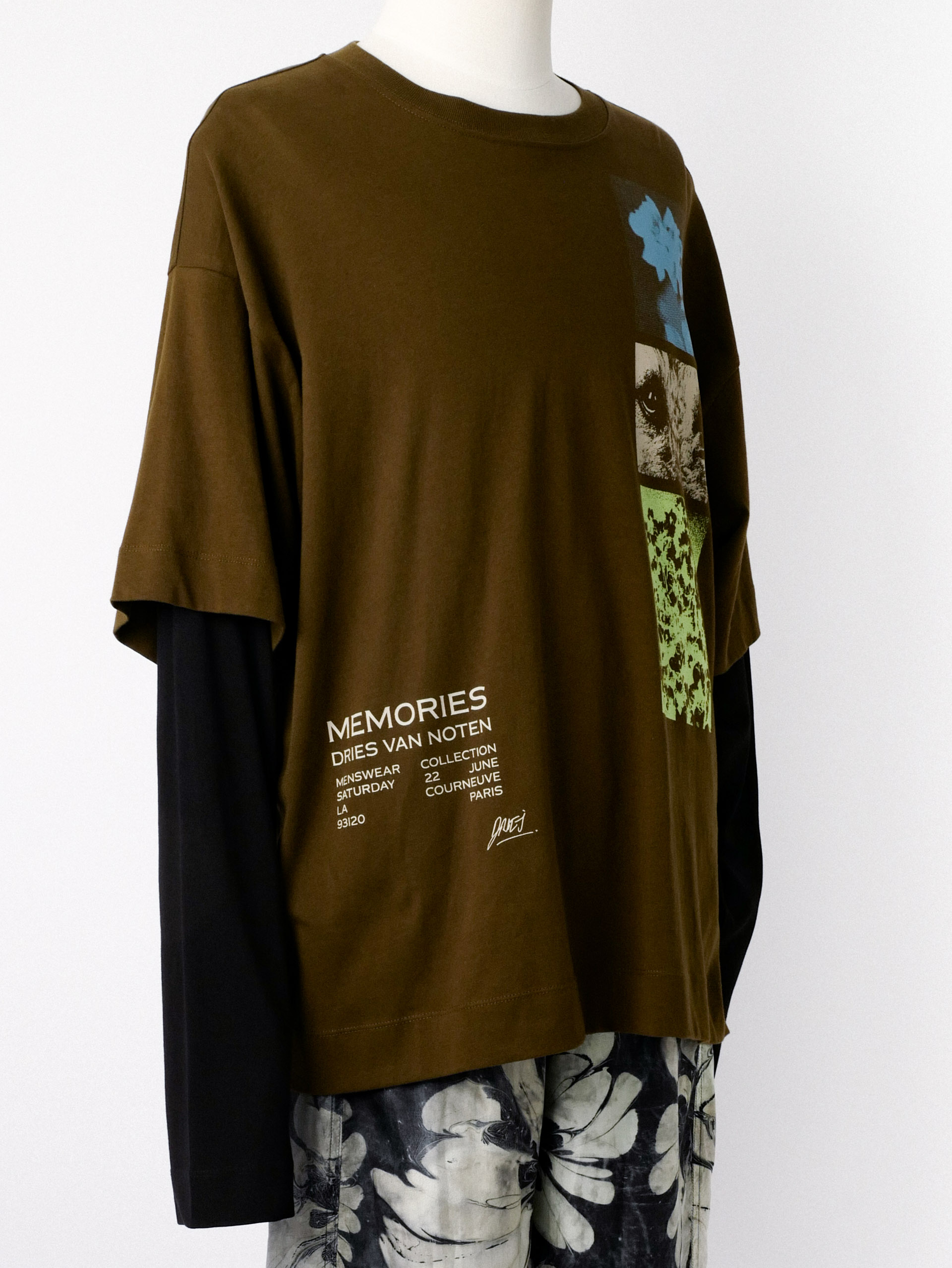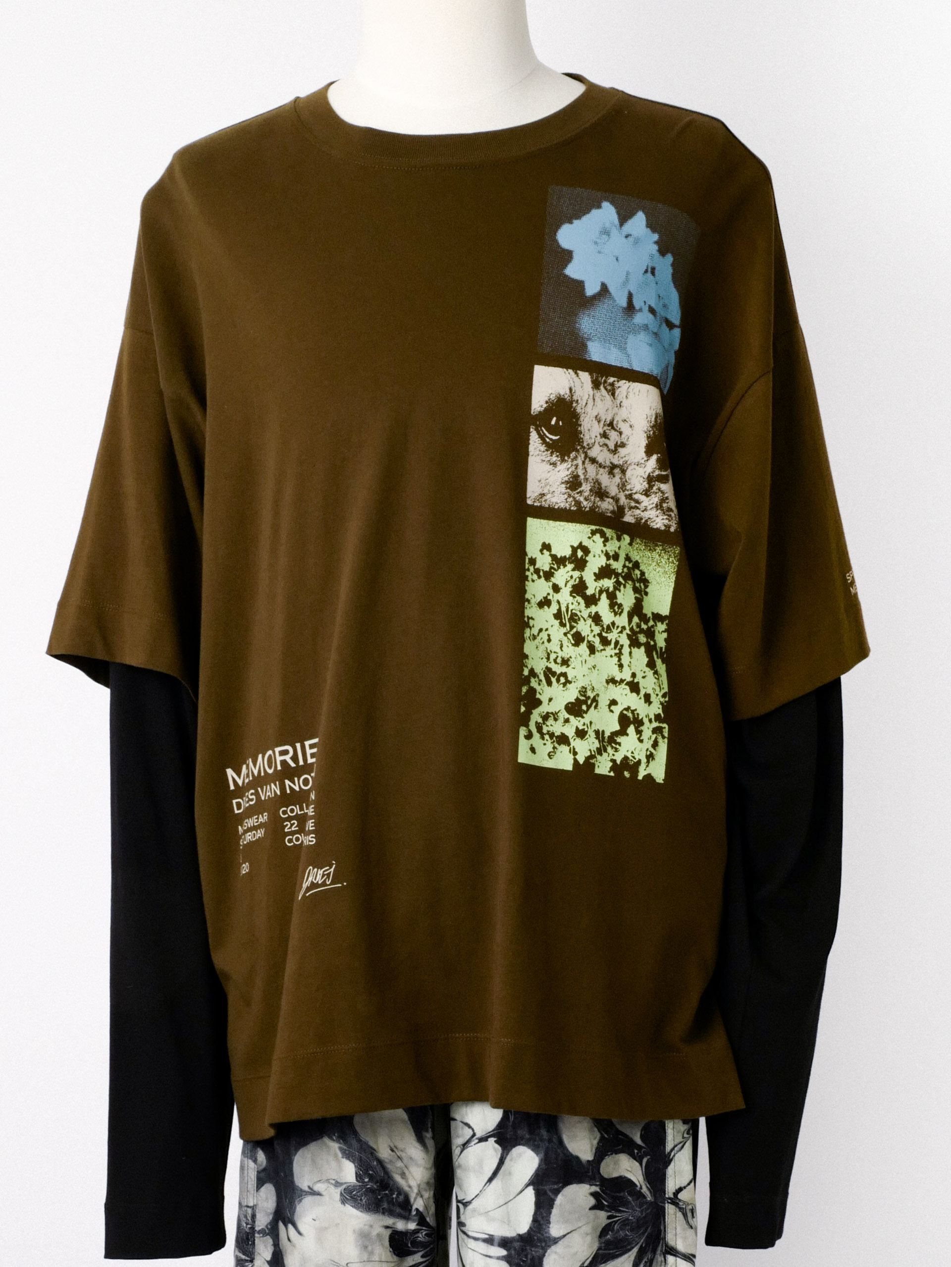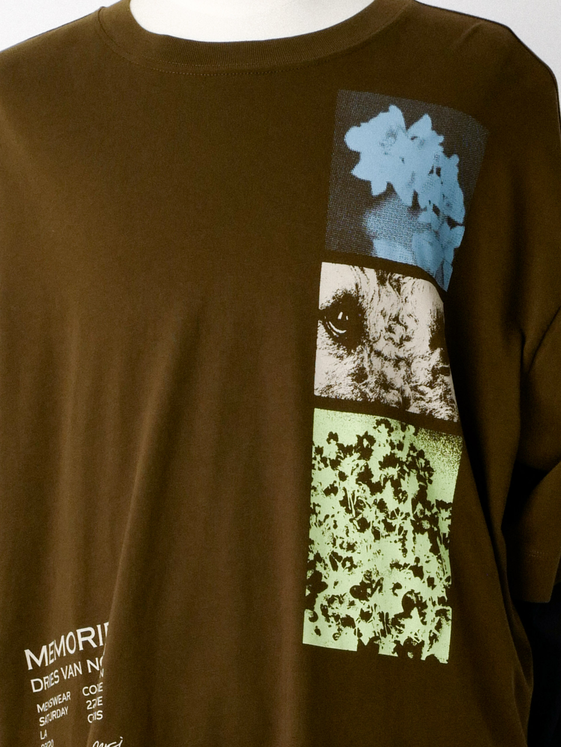 Oversized cotton jersey T-shirt in khaki, with graphics, text, and logo printed at front