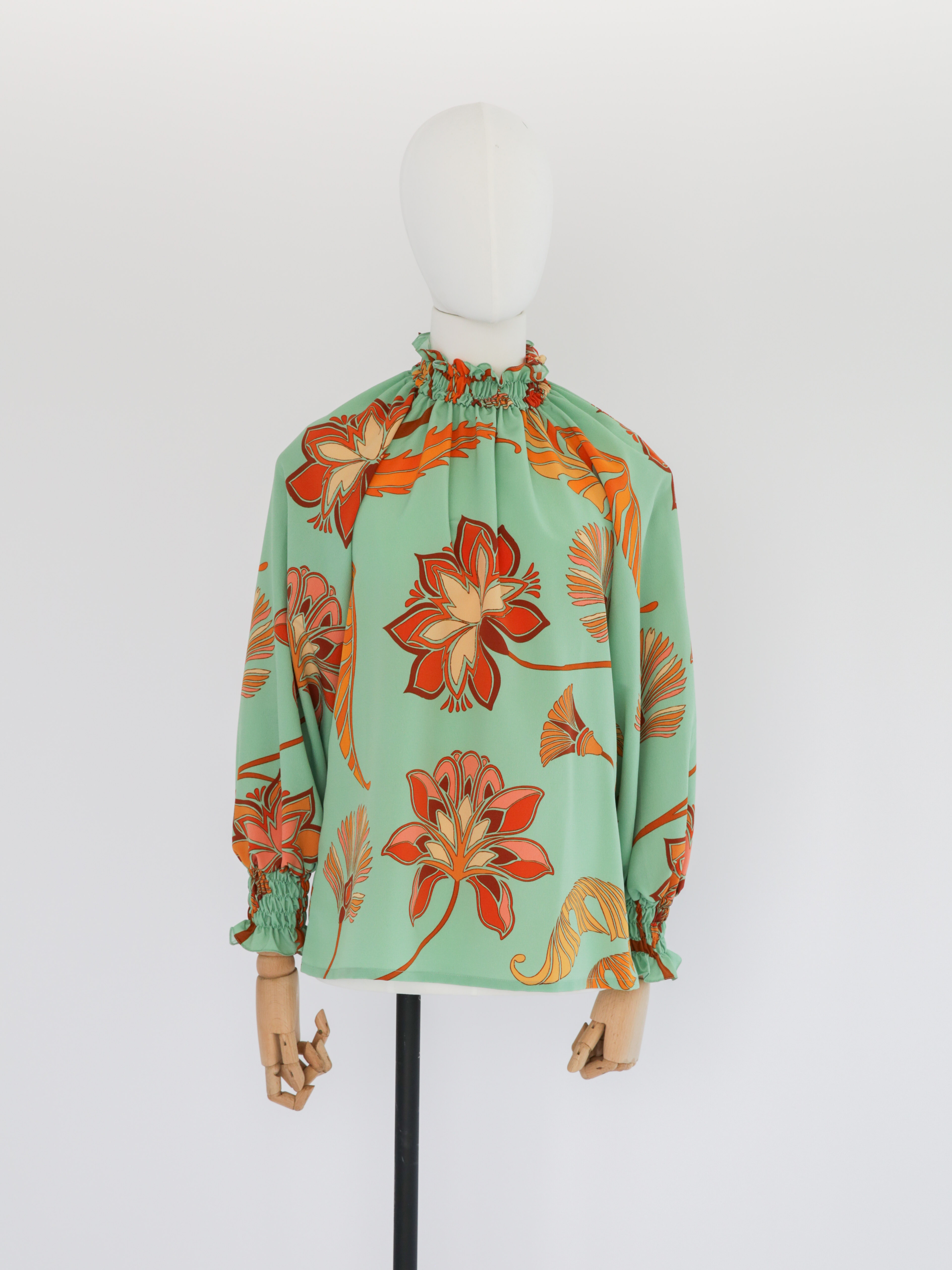 Limerencia Floral Print High-Neck Blouse