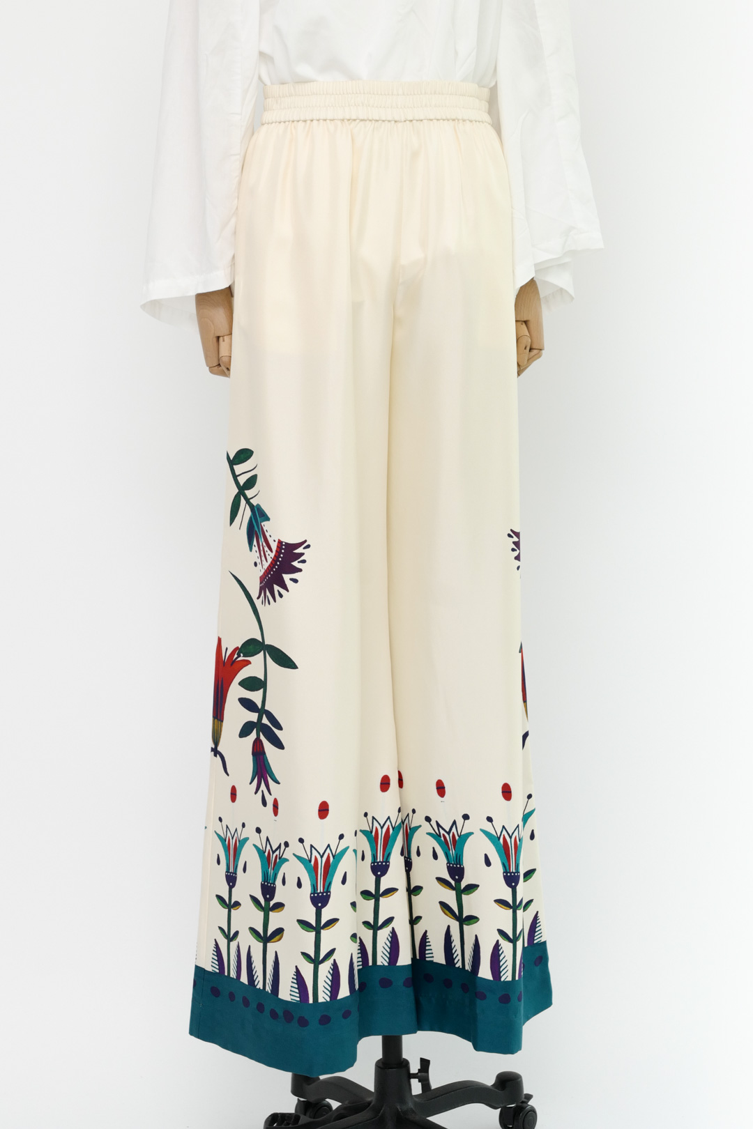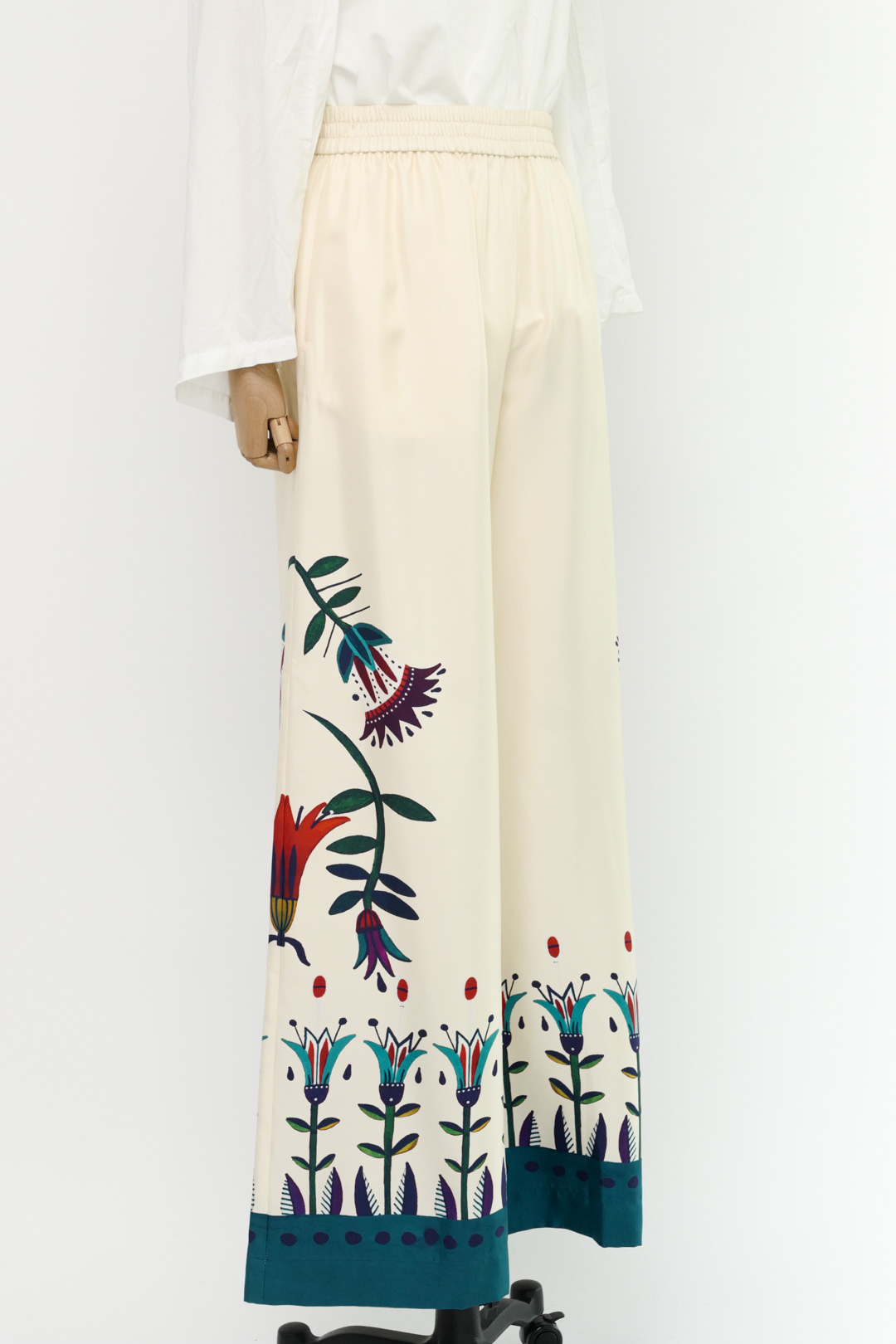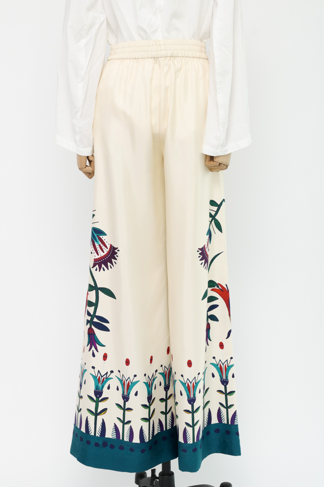 La Double J perfectly injects its signature maximalism onto these fabulous palazzo trousers, with a delicate handprinted floral design by artist Heliania Aitch that feels almost Art Deco. Establishing a beautifully iridescent finish, the trousers are made from a silk twill sourced from Lake Como – a true love letter to Italian craftsmanship.