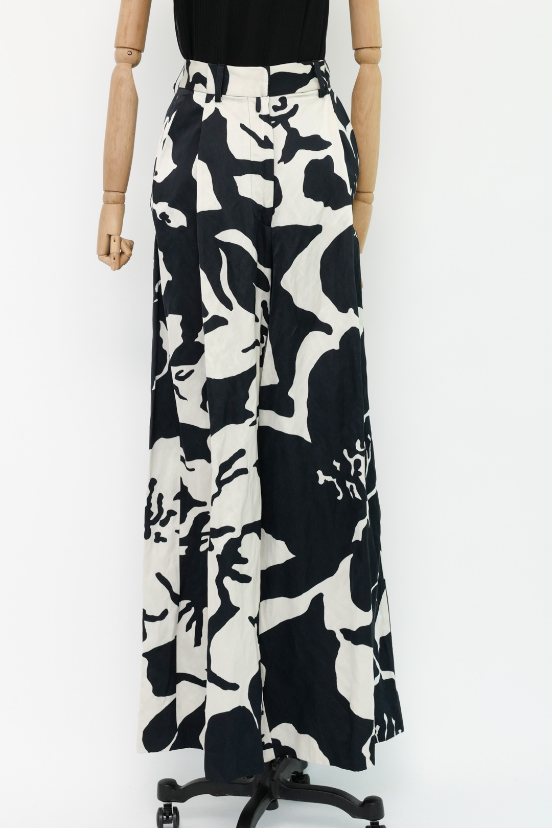 Dries Van Noten synthetic podium floral pleated-front pants in black. Sit high on the waist and have dramatic wide legs that are accentuated by pleats.