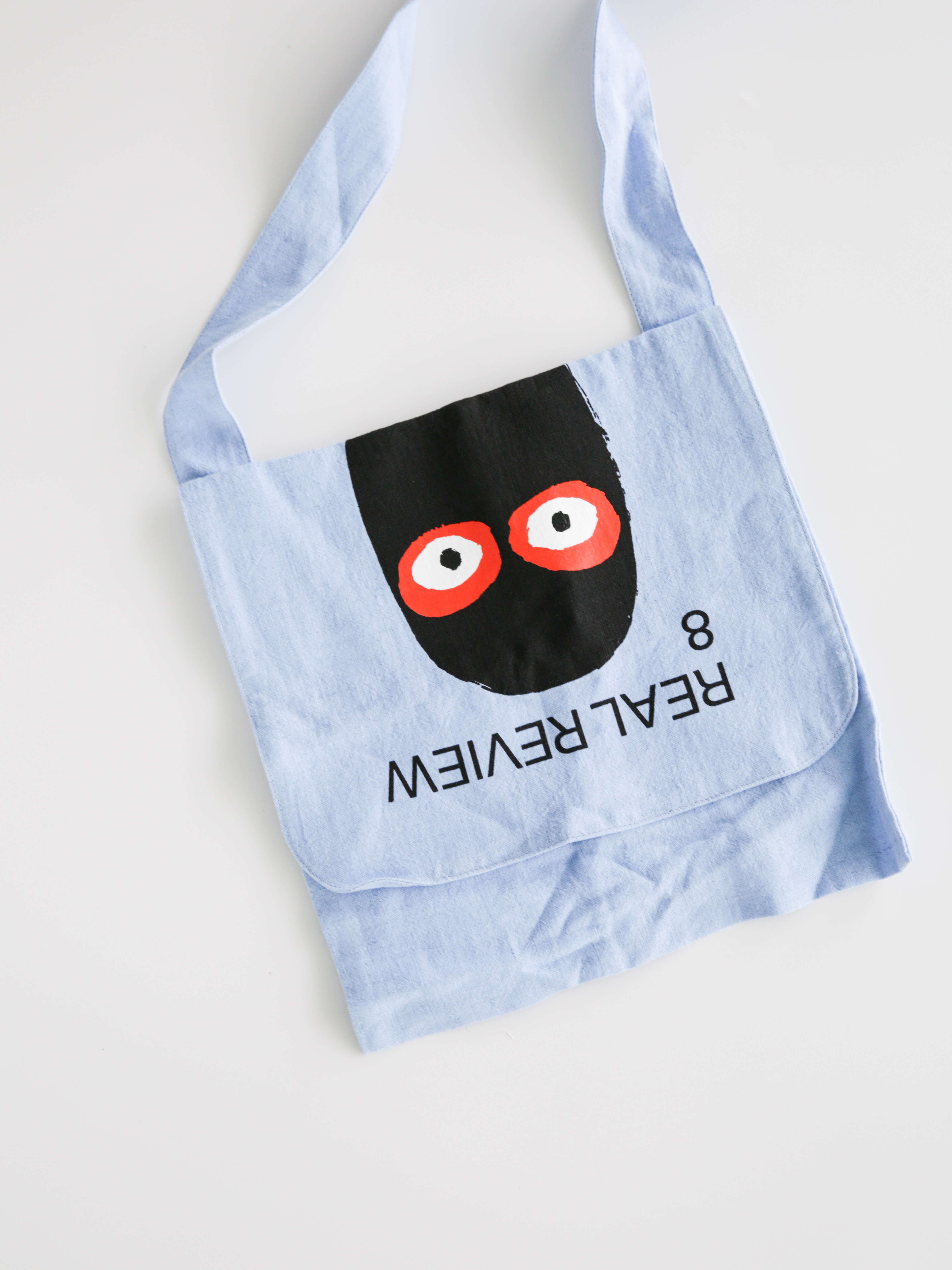 Junya Watanabe Real Review Tote Bag in blue. This tote bag can be worn across the shoulder diagonally or vertically at your side.