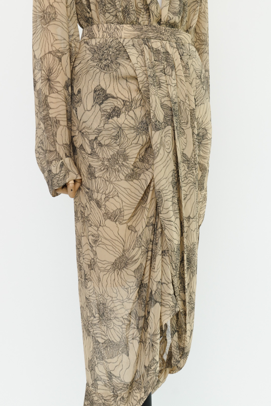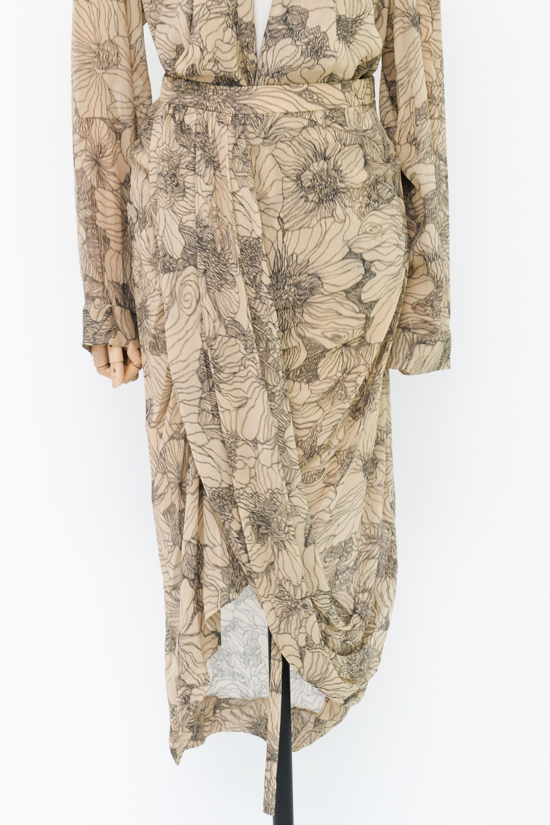 Draped floral-print chiffon skirt from DRIES VAN NOTEN. Featuring concealed zip fastening along side, non-stretchy fabric, lightweight fabric.