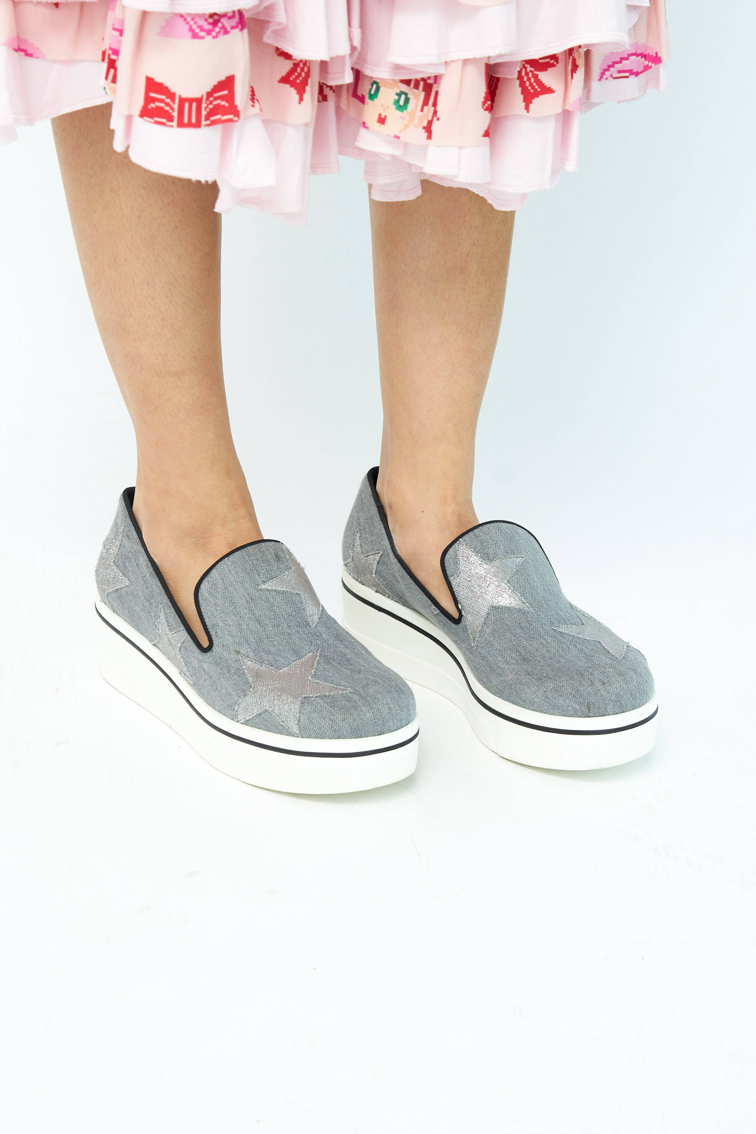 This Spring/Summer ’18 collection Silver Stars Elyse shoes from Stella McCartney are an edgy finish to any outfit, crafted from denim, these slip-on style shoes also feature a ridged rubber sole and a branded insole