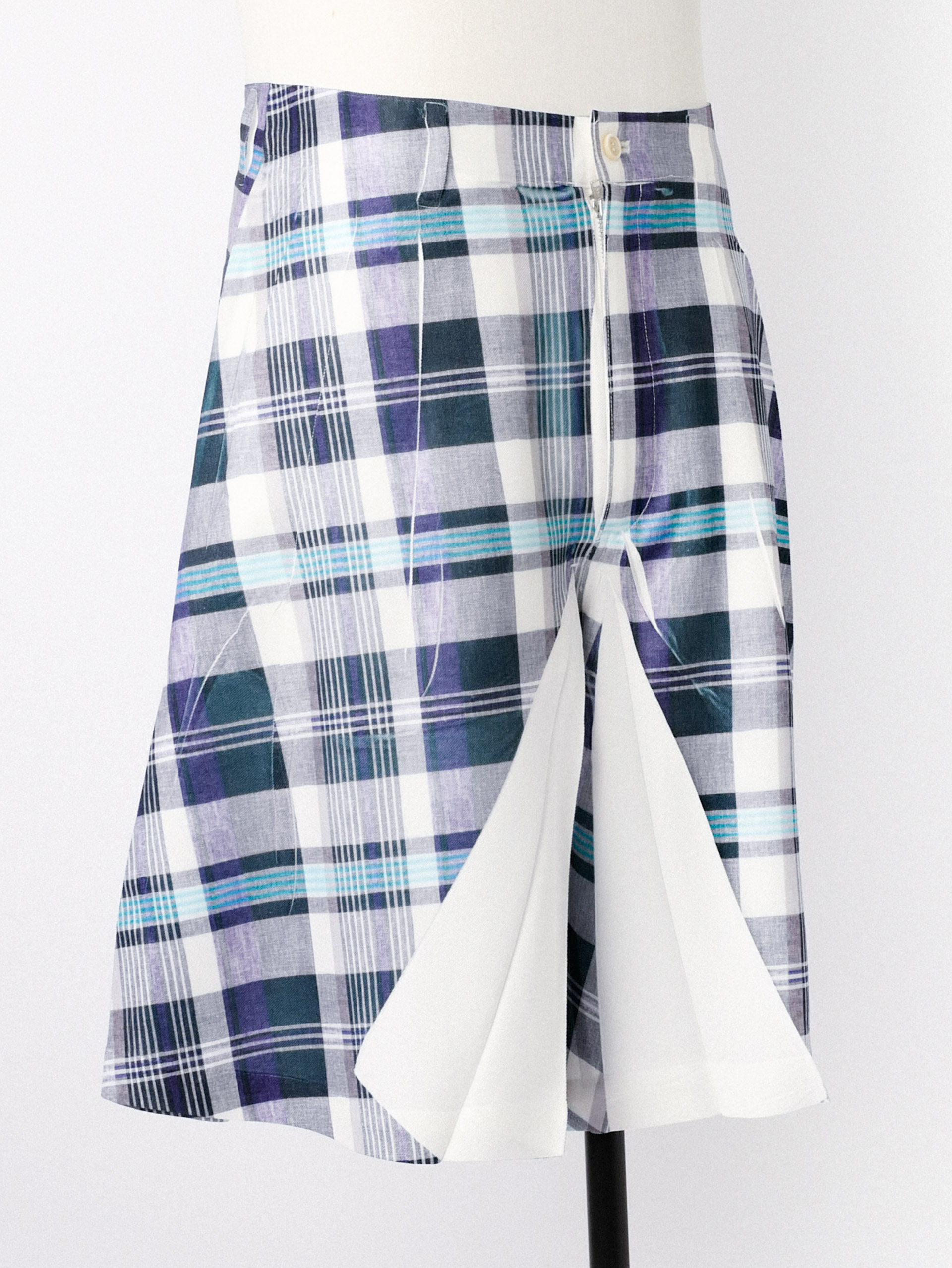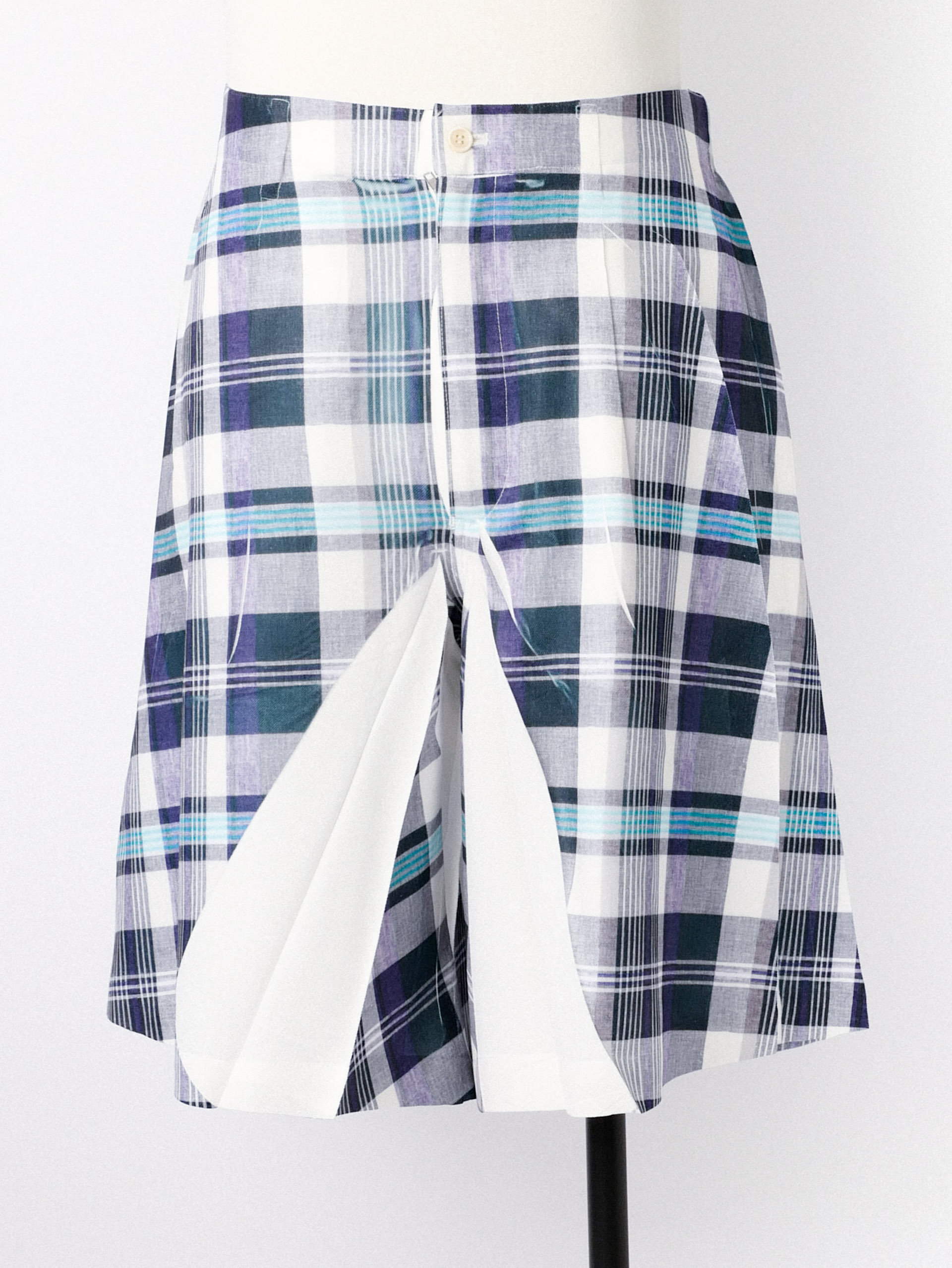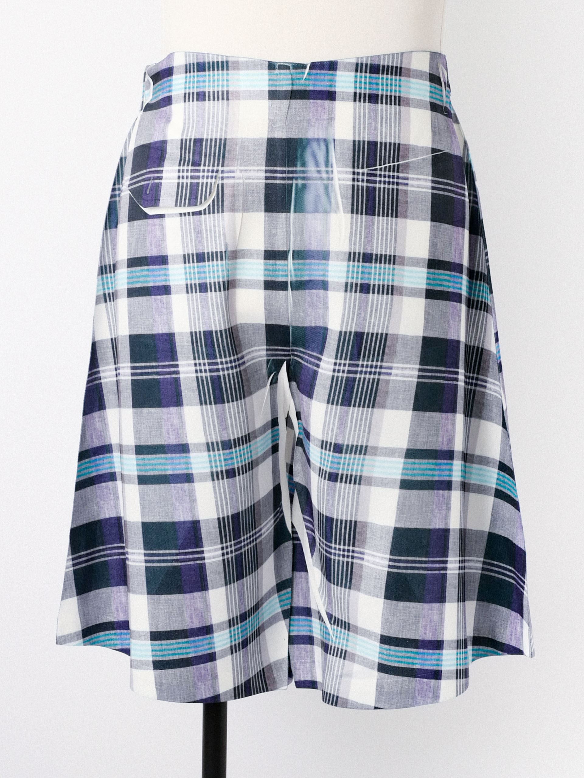Tartan overprint shorts with front button and zip fastening, belt loops and two inset pockets