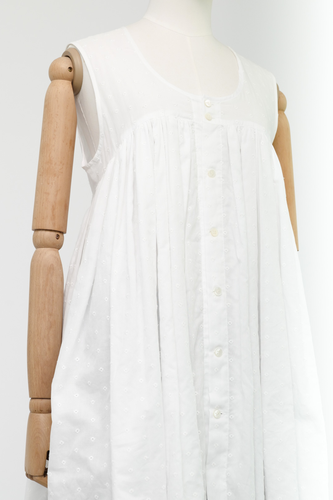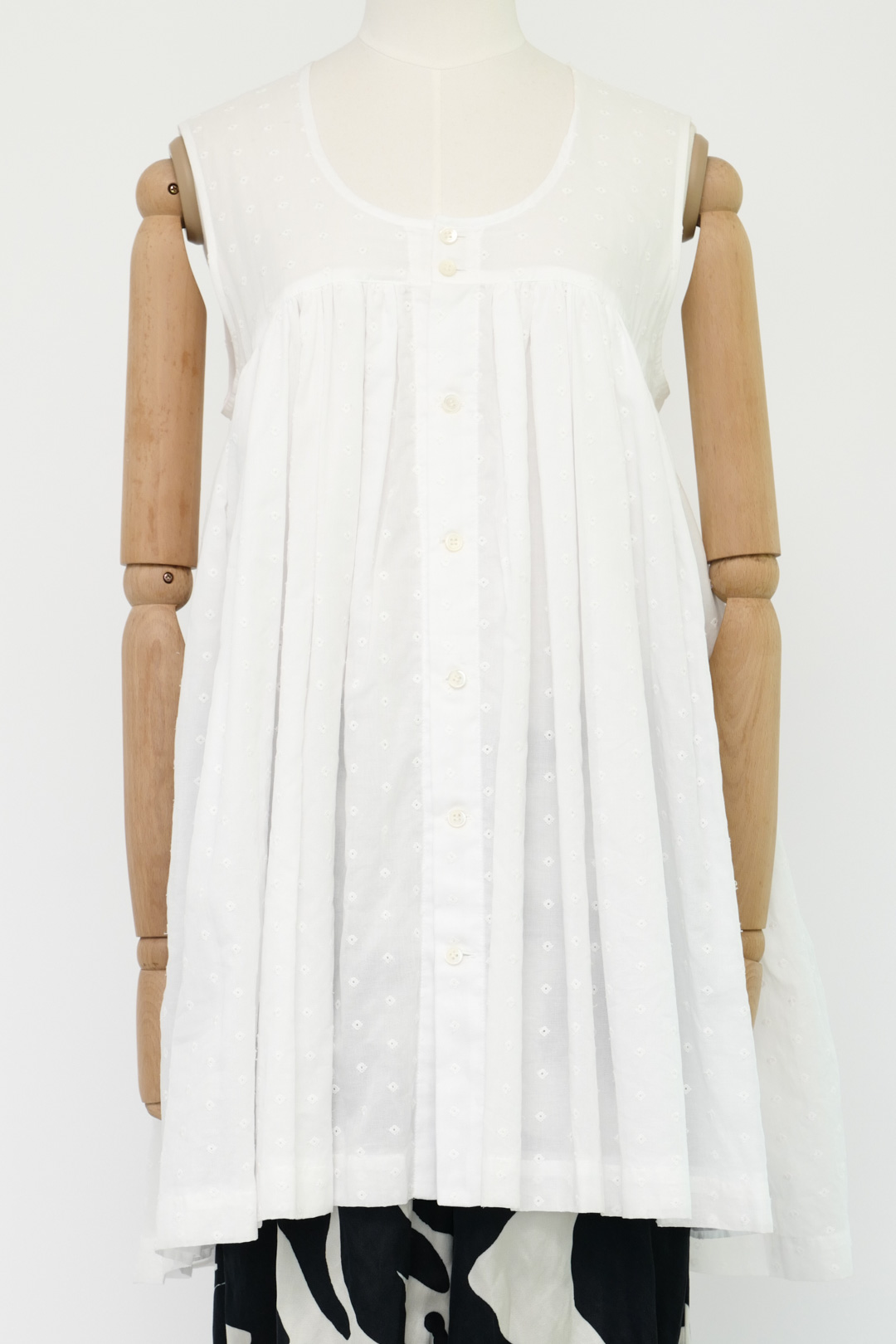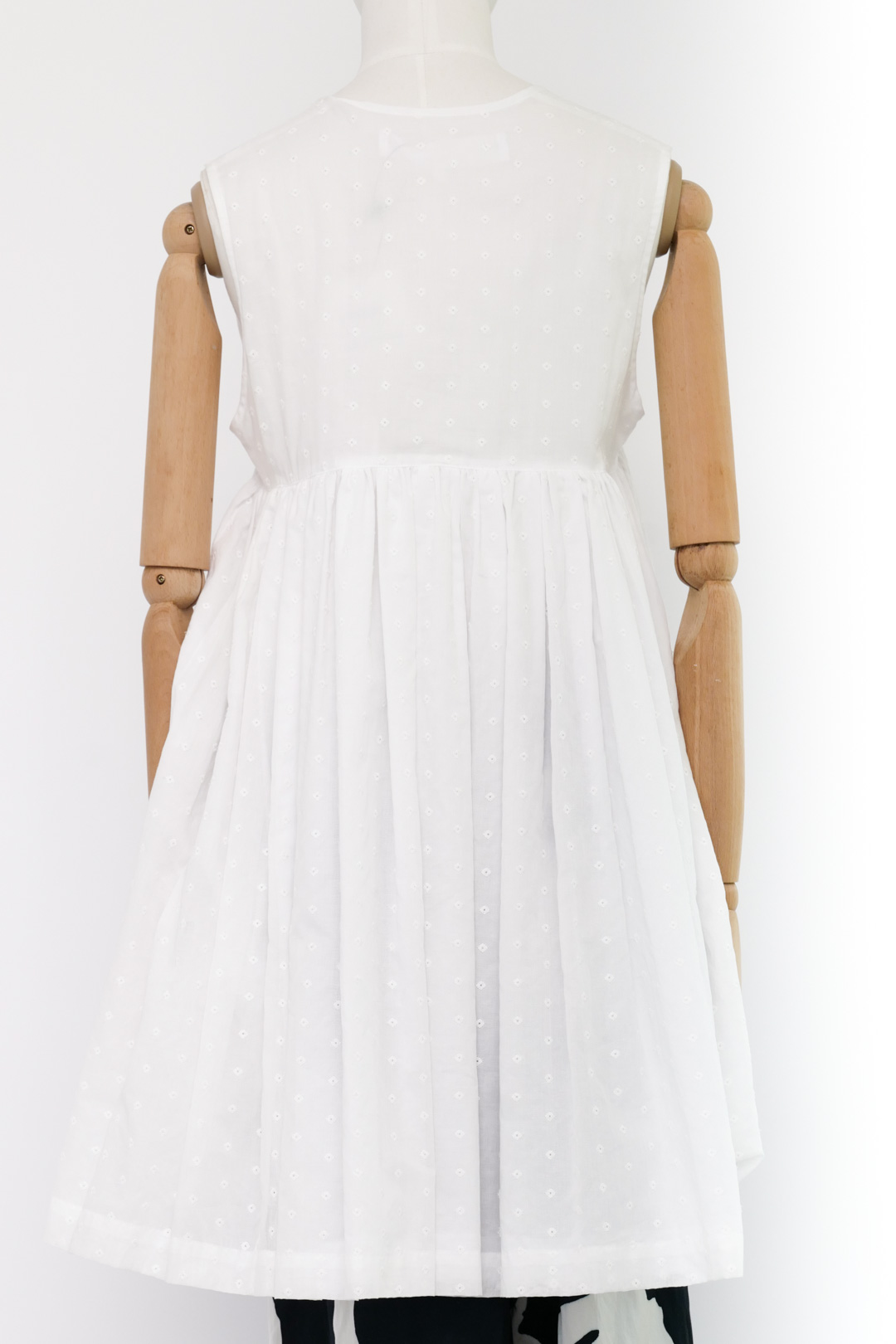 White sleeveless blouse from Comme Des Garçons Tao, with cotton poplin broderie anglaise fabric.