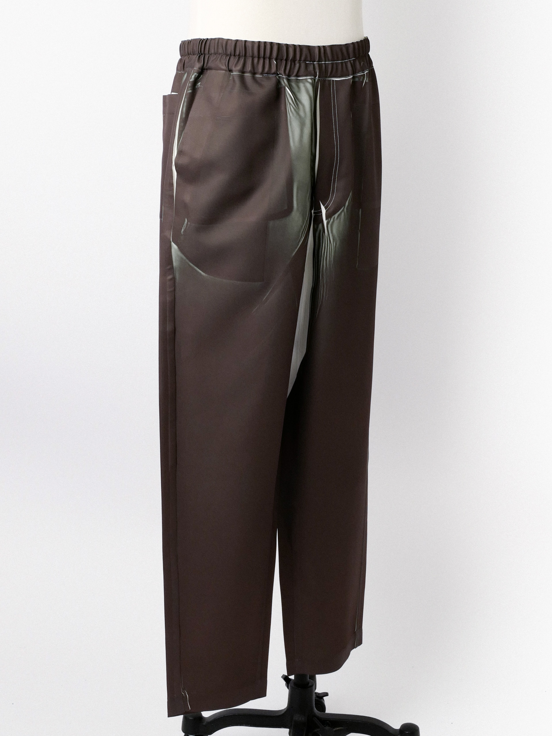 Denim-print trousers from Comme Des Garcon SHIRT. Featuring concealed front zip fastening and elasticated waistband with internal drawstring